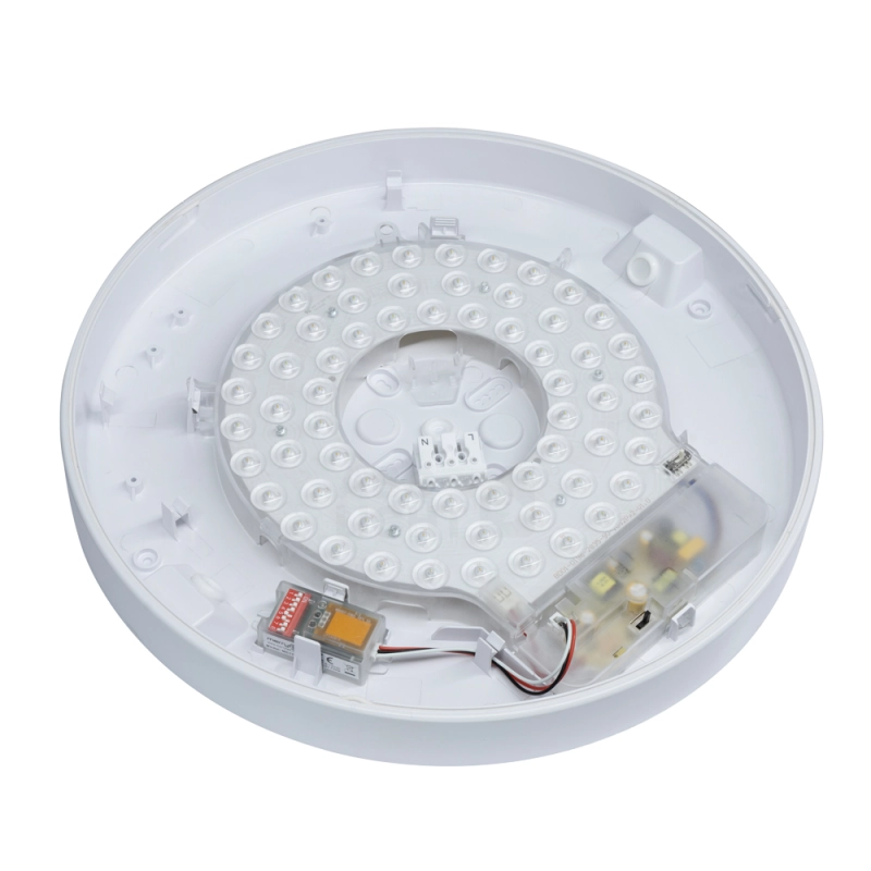 Die Evodisc Pro 3CCT LED-Deckenleuchte Ø335 mm mit Sensor kombiniert flexibel einstellbare Lichtintensität (800/1200/1500 lm) und Farbtemperatur ( 3000, 4000 oder 6000 K ) mit einem integrierten HF-Mikrowellen-Bewegungs- und Tageslichtsensor. Dadurch eignet sie sich ideal für Räume, in denen nur bei Bedarf Licht benötigt wird – beispielsweise Flure, Abstellräume, Toiletten, Lagerhallen oder Gemeinschaftsbereiche.