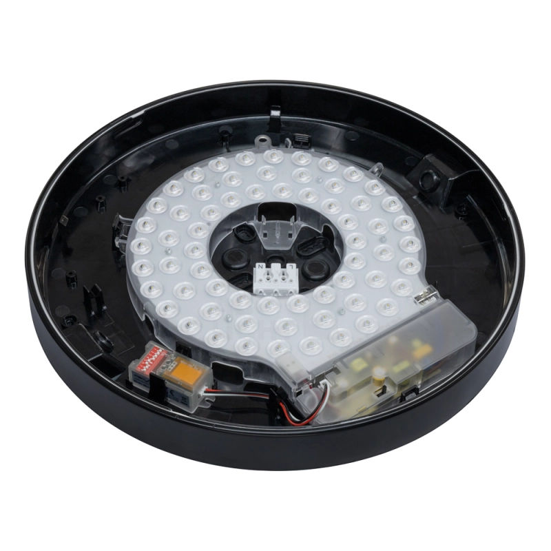 Die Deckenleuchte ist nach IP54 (staub- und spritzwassergeschützt) und IK10 schlagfest und eignet sich daher für intensive Nutzung oder semi-industrielle Umgebungen. Mit einem Farbwiedergabeindex (CRI) von >95 und einer Lichtleistung von bis zu ca. 90 lm/W spendet sie helles, natürliches Licht. Dank des modularen Aufbaus sind Wartung und Komponentenaustausch unkompliziert.