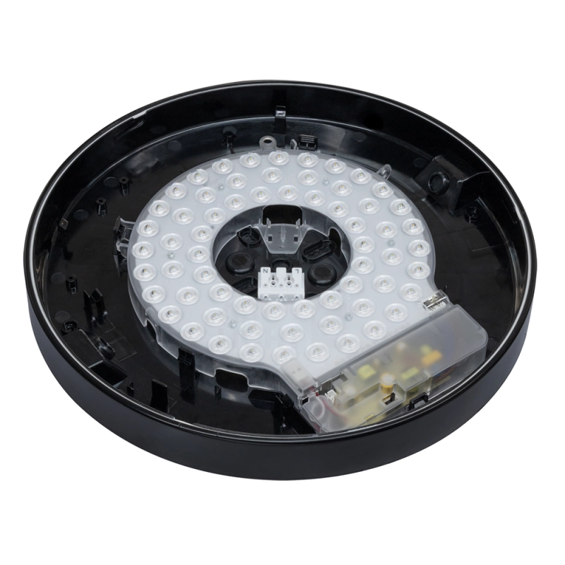Die Deckenleuchte ist staub- und spritzwassergeschützt (IP54), stoßfest (IK10) und für den intensiven Einsatz konzipiert, wodurch sie auch in anspruchsvollen Umgebungen zuverlässig funktioniert. Dank ihres modularen Aufbaus ist sie einfach zu warten und auszutauschen. Der integrierte 3CCT-Farbregler und der Wattschalter machen die Leuchte flexibel und für eine Vielzahl von Räumen und Anwendungen geeignet.